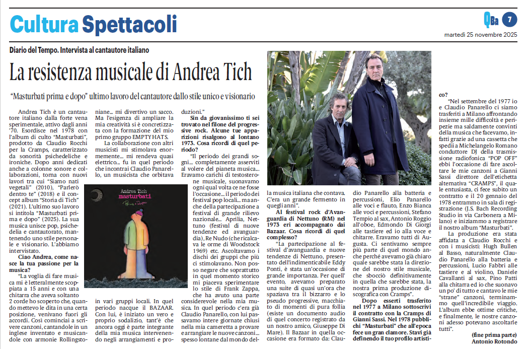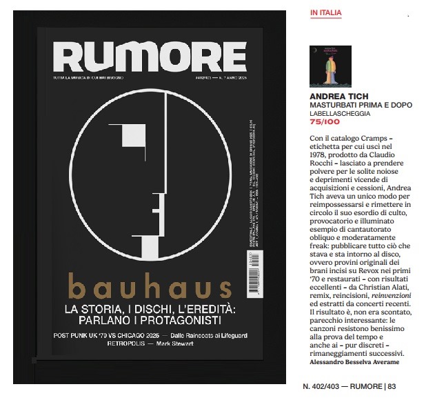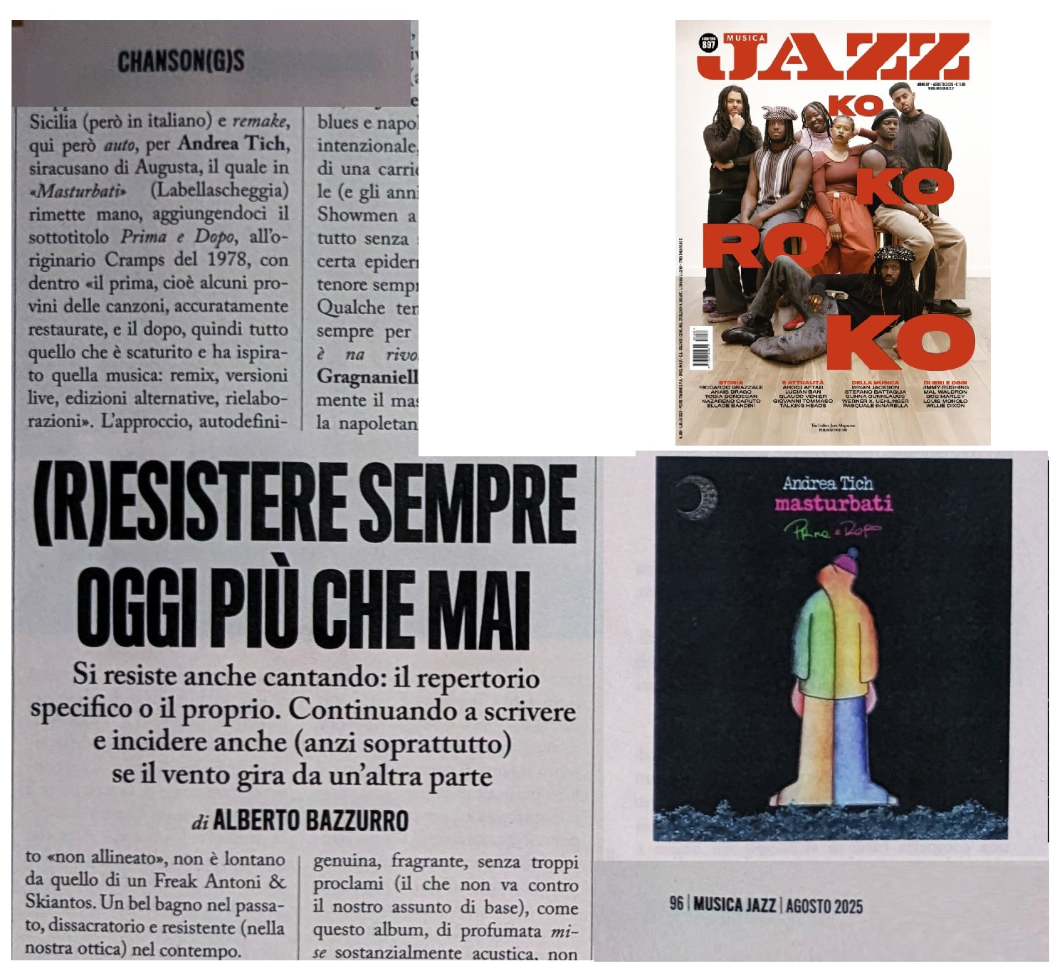 Masturbati Prima e Dopo non è solo un disco: è un archivio vivente, una capsula del tempo, un gesto d'amore per una musica che non si allinea, non chiede il permesso e continua a brillare anche dove il riflettore non arriva. Dentro ci trovi l'Andrea Tich di ieri, ma anche quello di oggi. E forse anche quello di domani.
